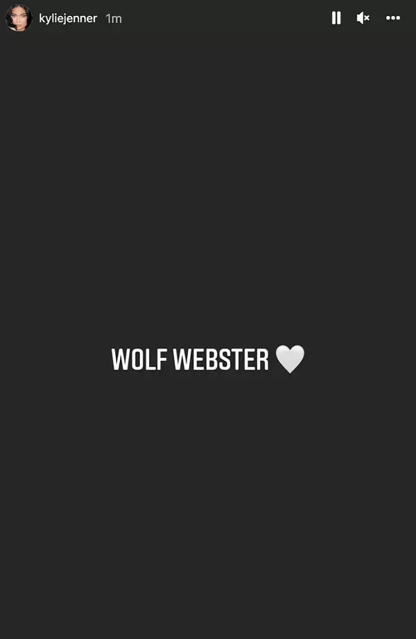 Tras haber confirmado la llegada de su recién nacido la semana pasada con una tierna foto, Kylie Jenner finalmente confirma el sexo y nombre de su bebé. Por medio de Instagram stories, la empresaria publicó una foto con fondo gris en la que escribió: “Wolf Webster”, junto a un emoji de corazón blanco.