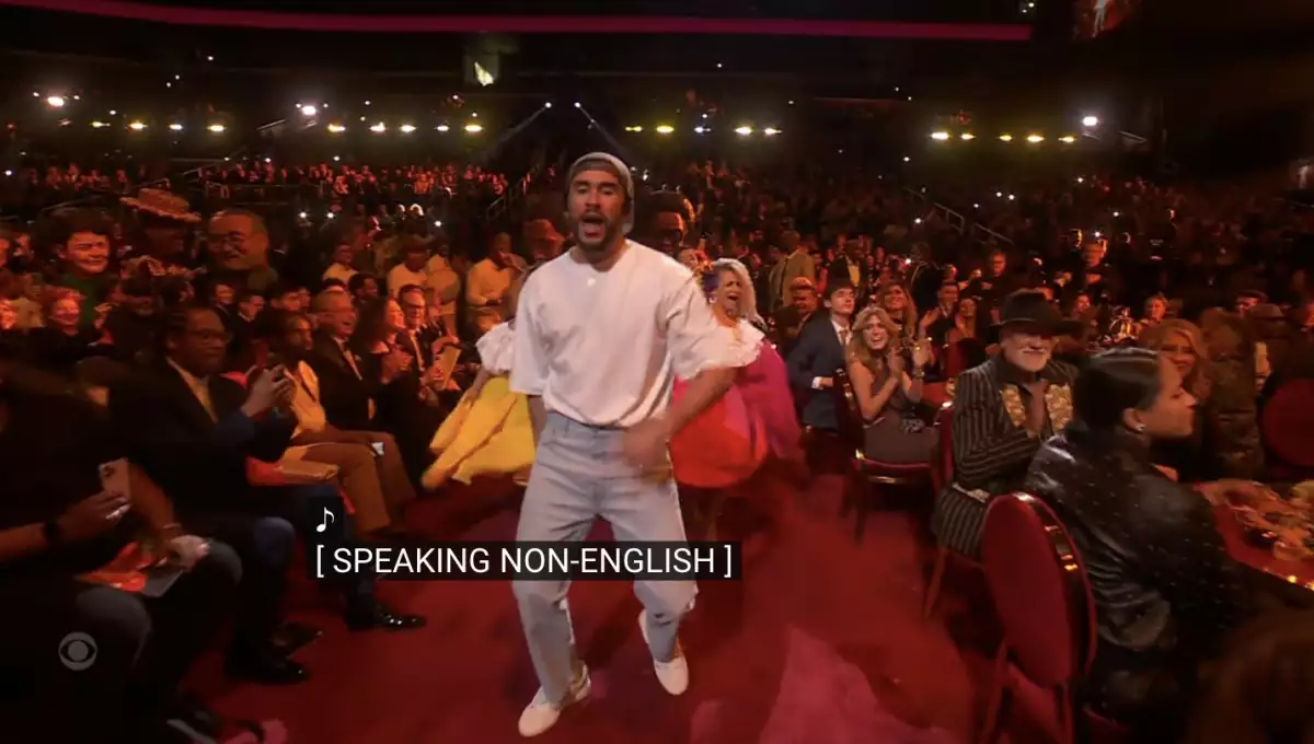 Las acusaciones no terminaron ahí. Más adelante en la ceremonia, Bad Bunny se apoderó del escenario para recibir su premio a Mejor Álbum Urbano y una vez más, cuando dio su discurso en español, la transmisión de los Grammys puso en los subtítulos “SPEAKING NON-ENGLISH”, que se traduce en español a “Hablando en un idioma que no es inglés”. Después de esto, los usuarios de Twitter explotaron y continuaron atacando a la Academia y le exigieron que para la próxima usara un subtitulador multilingüe.