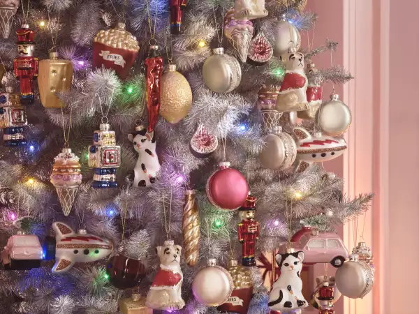 Si eres de los que disfruta adornar el arbolito, H&M HOME trae decoraciones alegres e imaginativas en todo tipo de formas y tamaños como esferas de hilo en rosa y rojo, esferas de caña de caramelo, adornos de papel e incluso piezas alucinantes como macarrones, soldados de juguete, helados y papas fritas.