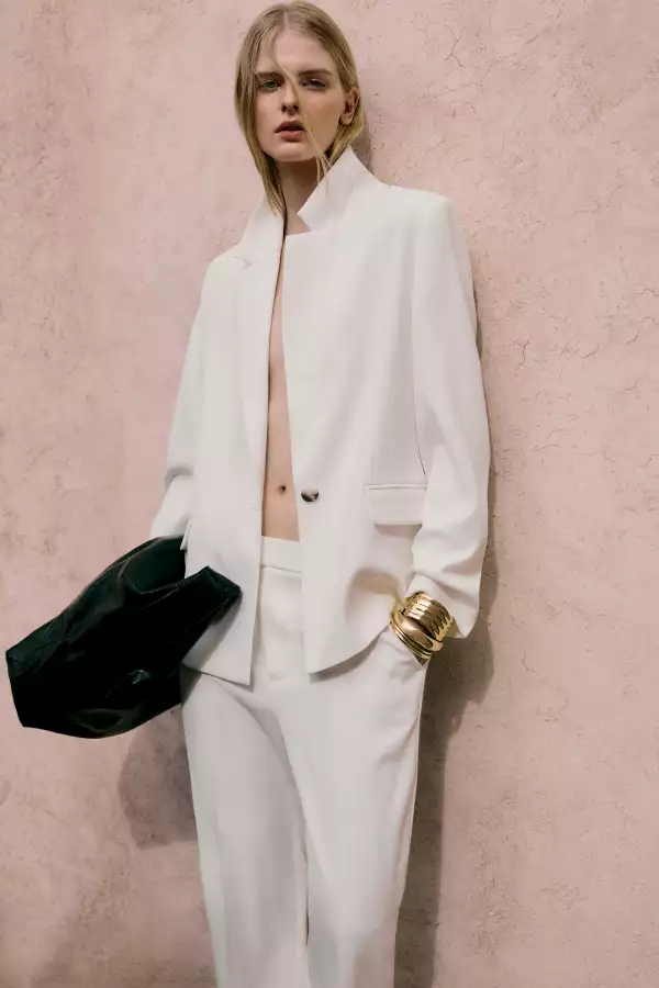 Por otra parte, se encuentra BEYOND THE HORIZON, una propuesta que reinterpreta la sastrería clásica con cortes precisos y siluetas versátiles. Los trajes de chaqueta de tres piezas, las bermudas tailoring y los pantalones wide leg crean combinaciones innovadoras que redefinen el concepto de tailoring actual.