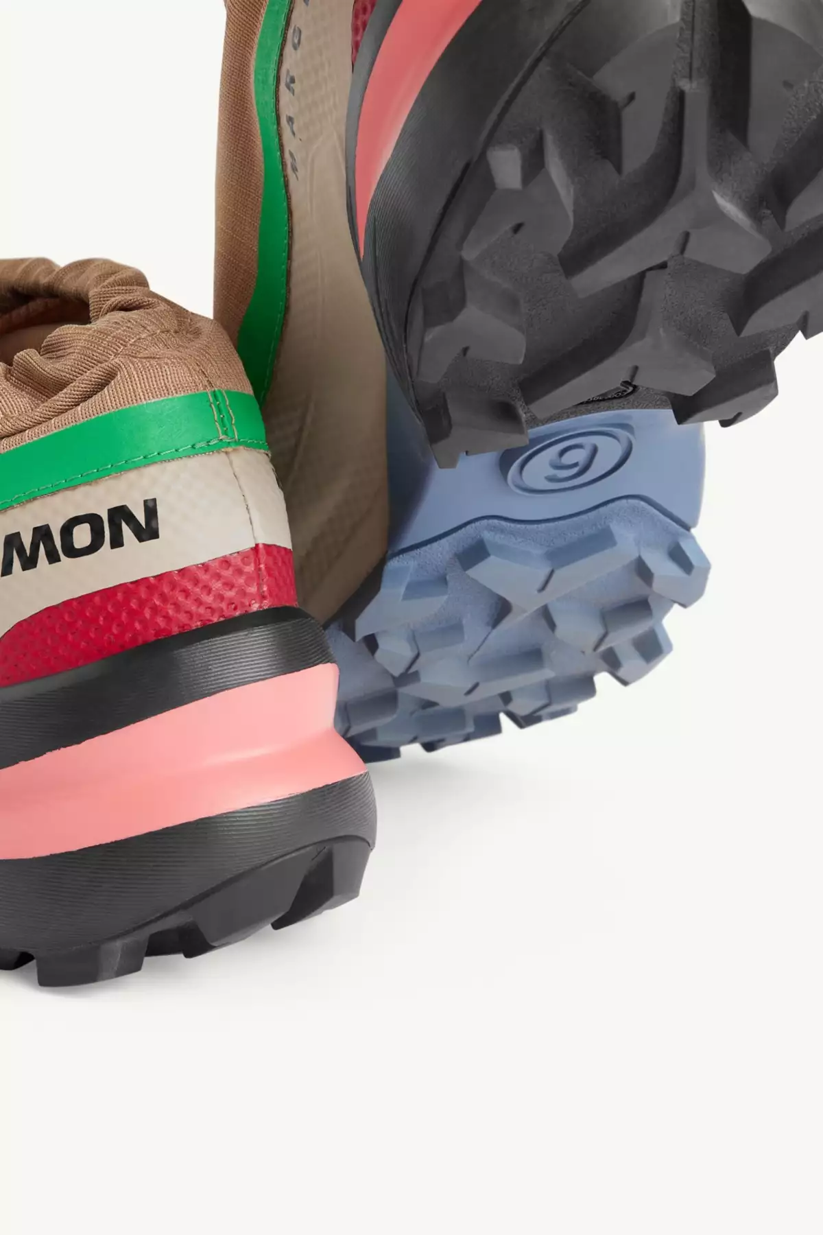 Rihanna usó un look monocromático en rojo conformado por varias capas. Llevó un jumptsuit de Loewe con una bustier hecho a la medida por Jonathan Anderson que enmarcaba su pecho, una chamarra oversized Alaïa y unos tenis rojos con detalles en rosa de MM6 Maison Margiela que ya se hicieron virales y que además, no son exorbitantemente caros.