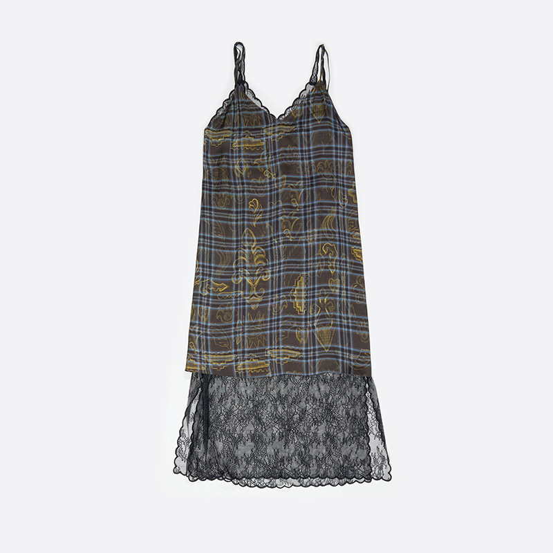 Su elección: Vestido de tirantes doble capa y encaje Ikatmix azul.