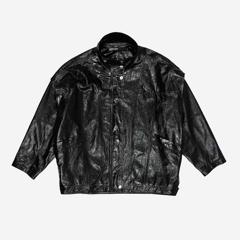Su elección: Chamarra oversized de piel negra.